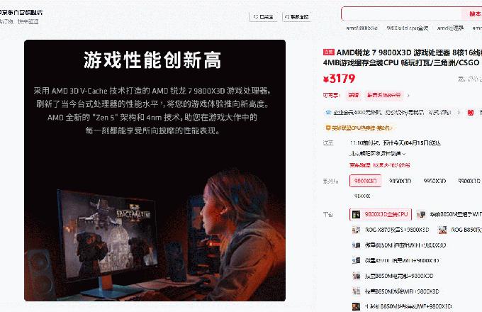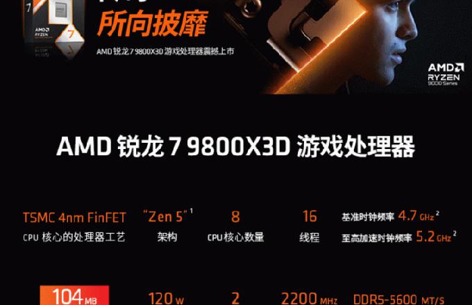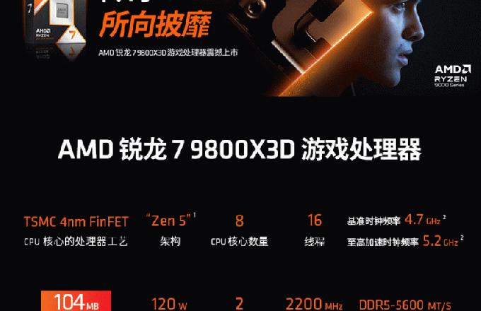 备战五一假期 锐龙7 9800X3D处理器畅玩新游利器