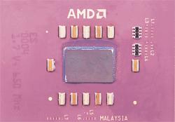 这是正中央的Die,如同Pentium III FC-PGA般的设计,这样可是让CPU在散热部份更加的直接,一侧还刻有Thunderbird的时脉频率与电压 |