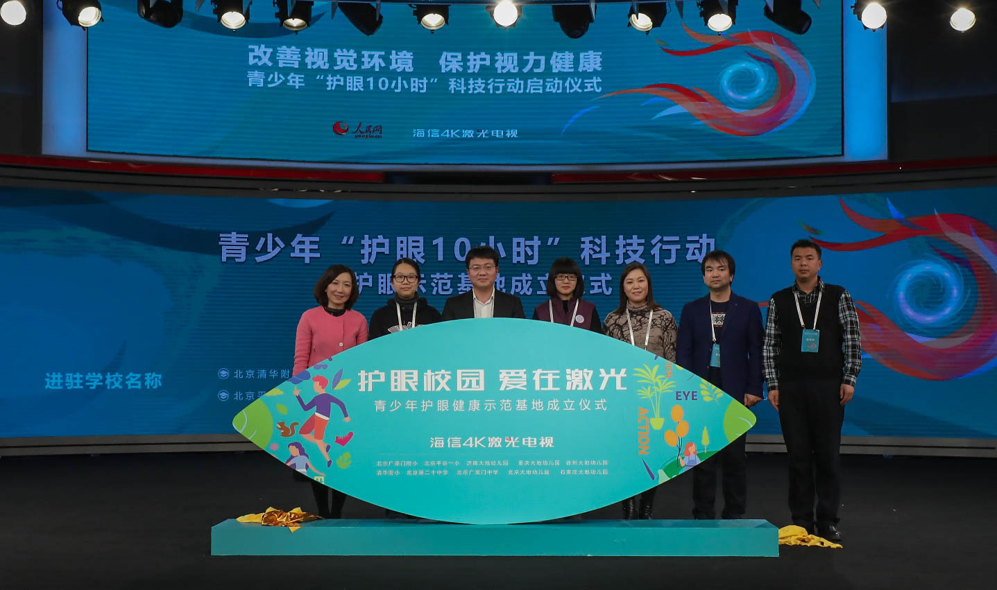 1月9日下午,海信和人民网在北京共同发起“青少年护眼10小时”科技行动,呼吁全社会关注青少年视力健康,倡导采取科技先行、科学护眼的有效举措改善青少年视力健康。作为落实此次行动的第一步,海信4K激光电视进驻北京广渠门中学、清华附小、大地幼儿园等十所校园,建立“青少年护眼示范基地”。