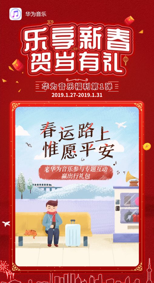 小年已过,年味渐浓,你是否已经踏上返乡过年的旅途呢?你又计划如何开启“猪”事顺遂的一年呢?当然少不了来一波惊喜福利讨个新年好彩头!1月27日起,华为音乐多重福利壕气十足,为每一位用户而来。其中,第一波春运福利活动即将结束,快快打开华为音乐APP邂逅更多惊喜吧!