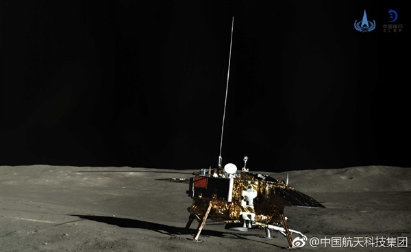 中国航天科技集团微博对这张照片进行了说明:“巡视器全景相机对着陆器再次进行成像,获得了着陆器彩色全景图。 ”