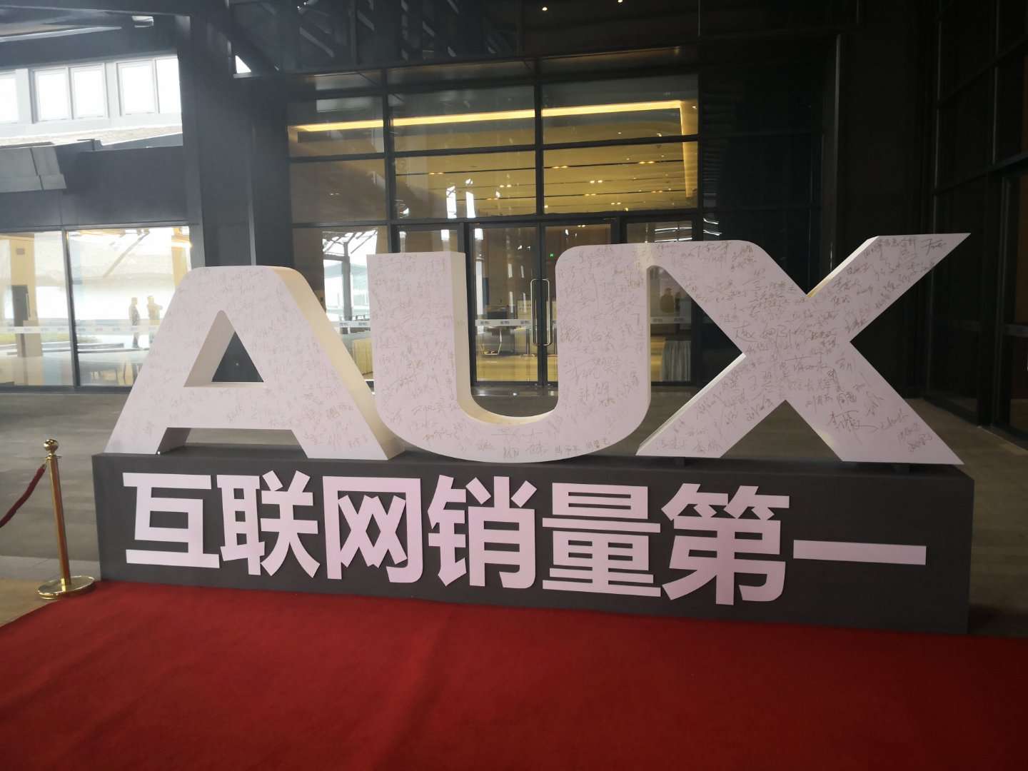 借力电商渠道的奥克斯空调现场立起醒目文字,号称“AUX互联网销量第一”。