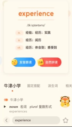 “不敢开口”是语言学习中最容易陷入的窘境,现实生活中许多孩子都怕说错、发音不准,但又苦于没有标准示范。有道少儿词典提供发音跟读功能,在示范领读之后支持用户跟读单词和表情打分,鼓励孩子主动“听”、开口“说”。