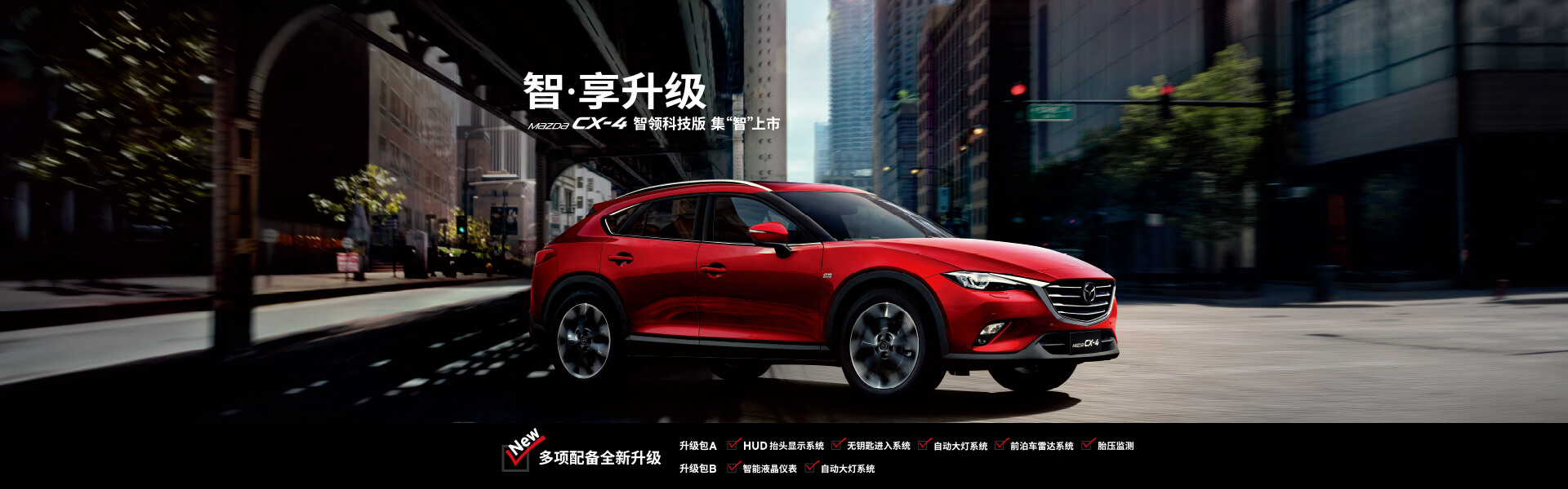 这两款车型和在售产品在造型方面没有差异,主要变化在于科技配置方面。阿特兹智领科技版在2.0L蓝天豪华版的基础上,新增了远程遥控系统、升级版HUD彩色抬头显示系统和无钥匙进入三项配置。CX-4智领科技版为用户提供了包括6项科技配置在内的两款科技包可选。选装包一装配了升级版HUD彩色抬头显示系统、无钥匙进入系统、前泊车雷达、胎压监测和自动大灯;选装包二则提供了自动大灯和智能液晶仪表,智能液晶仪表拥有日间、夜间和运动三种显示模式,并支持与手机互联。