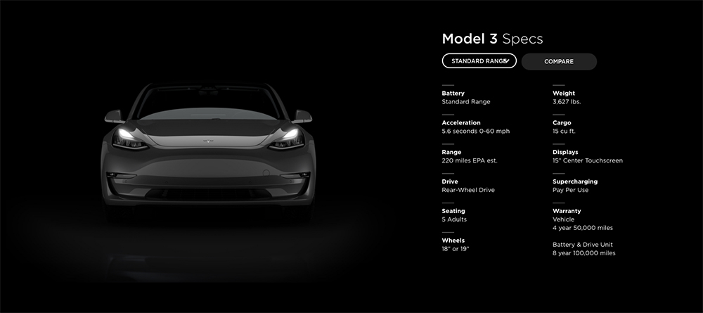 【小熊在线网 新闻报道】3月1日,特斯拉宣布标准版的Model 3正式上市,现在售价3.5万美元。目前这款Model 3在美国会在两周到四周之内开始交付。在欧洲 ......
