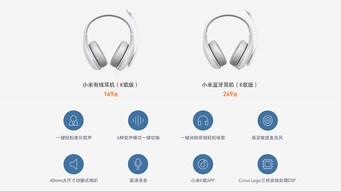 3月1日,小米蓝牙耳机(K歌版)正式发布,售价249元,将于3月5日上午10点首卖,小米商城、小米之家、小米有品、京东、天猫、苏宁易购同步开售。小米蓝牙耳机(K歌版)采用头戴式设计,通体白色,具备以下特色:1、一键美声,让歌声更着调。2、三档混响,一键切换。3、一键变声,六种声音模式任意切换(原声、女声、男声、童声、电音、机器人)。4、响指消音,原唱一秒变伴奏。5、高清录音,干音、湿音、混音循环切换。K歌版有两种选择,除了小米蓝牙耳机(K歌版)外,还有一款小米有线耳机(K歌版),售价149元。