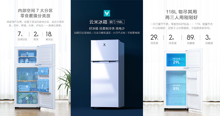 云米118L双门冰箱发布