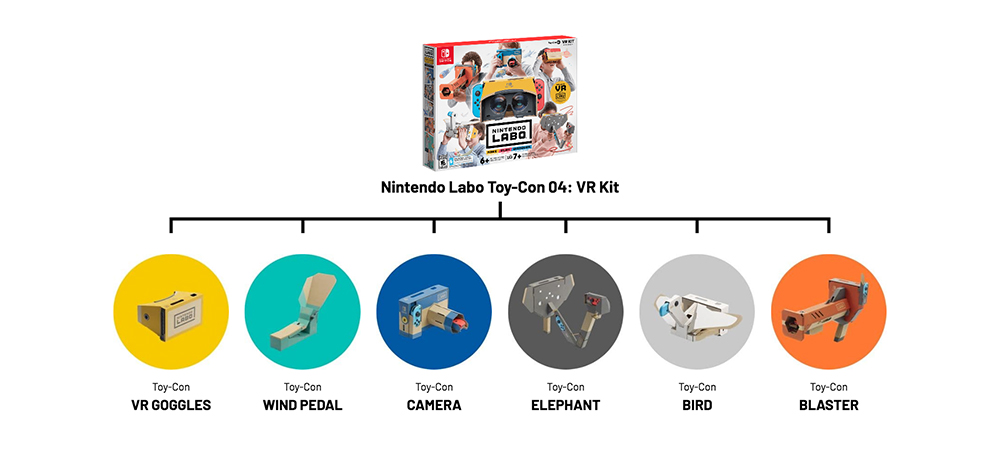 任天堂Labo VR套装和之前推出的三种套装相同,使用附带的纸板搭建出各种装置后把Switch置于其中就能进行VR游戏体验。售价39.99美元(约合人民币278元)的基础VR套装包含VR眼镜以及光枪两种周边,售价79.99美元(约合人民币535元)的完整版则包含以上两个装置的同时,还有VR相机、大象、小鸟、脚踏板四种额外玩法。