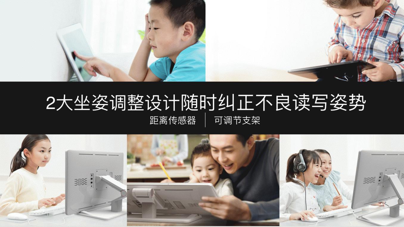 第一,在儿童健康保护。R1拥有2大健康方式措施全方位保护儿童健康。凭借此前在电视硬件领域多年的技术积累,新视家的技术团队决定使用24吋大屏幕改善体验,由于蓝光是造成视力损伤的罪魁祸首之一,而市场上的防蓝光产品几乎是对全部光源的无差别打压,技术团队又重新设计发光源,打造了儿童健康保护净蓝光方案,对蓝光进行针对性的降低。通过R1与iPhone8和新款iPad Pro进行的蓝光强度实测对比,结果显示R1远低于苹果的两款产品。此外,得益于距离传感器和可调节支架2大坐姿调整设计,能够随时纠正孩子的不良读写姿势。例如,当孩子一旦离屏幕过近,系统会自动提示,会暂停使用;同时增加了光线传感器,屏幕会根据室内光线调节亮度,并有3模式0重力可调节支架,具有趴、立的功能。