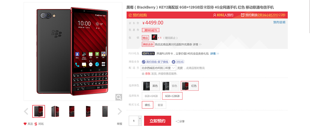 【小熊在线网 新闻报道】3月25日,黑莓手机官方宣布,黑莓KEY2红色版正式在京东开启预约,6GB+128GB版本,售价4499元,3月28日10点现货抢购。黑莓KEY2 ......