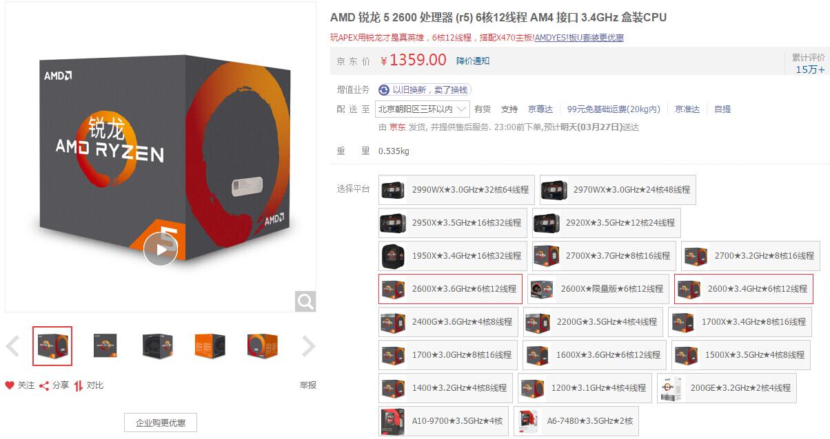 6核12线程才是正确选择 锐龙5 2600处理器热卖中