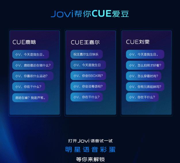 为给用户定制更多新奇体验,vivo邀请多位明星大咖,录制语音作为Jovi内置彩蛋,通过关键语句触发不一样的惊喜回答,让粉丝与爱豆不再空间喊话,直接一对一交流。