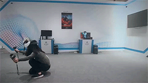 试玩的第二款游戏是《Paintball VR》(《VR彩弹》),这款游戏也是我认为现场体验感最好的一款游戏。在游戏中,玩家能够以1v1或2v2的形式与他人进行射击对战,作为一款混合现实游戏,在体验《Paintball VR》过程中,可以将Vive Focus Plus与触感力反馈马甲相连,这样在体验激烈对战的同时,就能身临其境地感受到被击中的感觉。尤其玩这种对战游戏时,无论是剧烈爆炸还是队友轻微搭肩动作,都能被实时、适度的感觉到,简直神还原《头号玩家》男主购买的那身“X1”全身触觉反馈套装,穿上它玩VR,不光视觉、听觉高度拟真,连触觉也完美地还原了真实效果。