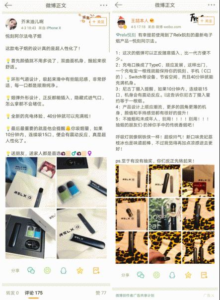 “作为一家深具社会责任感的公司,RELX 悦刻主动承担社会责任,RELX 悦刻坚决支持与拥护国家和各地政府的各项控烟措施,坚决反对向未成年人售卖、营销电子烟产品。RELX 悦刻恪守道德底线、严格自律,从产品标识等各层面斩断将电子烟产品售卖给未成年人的可能。”