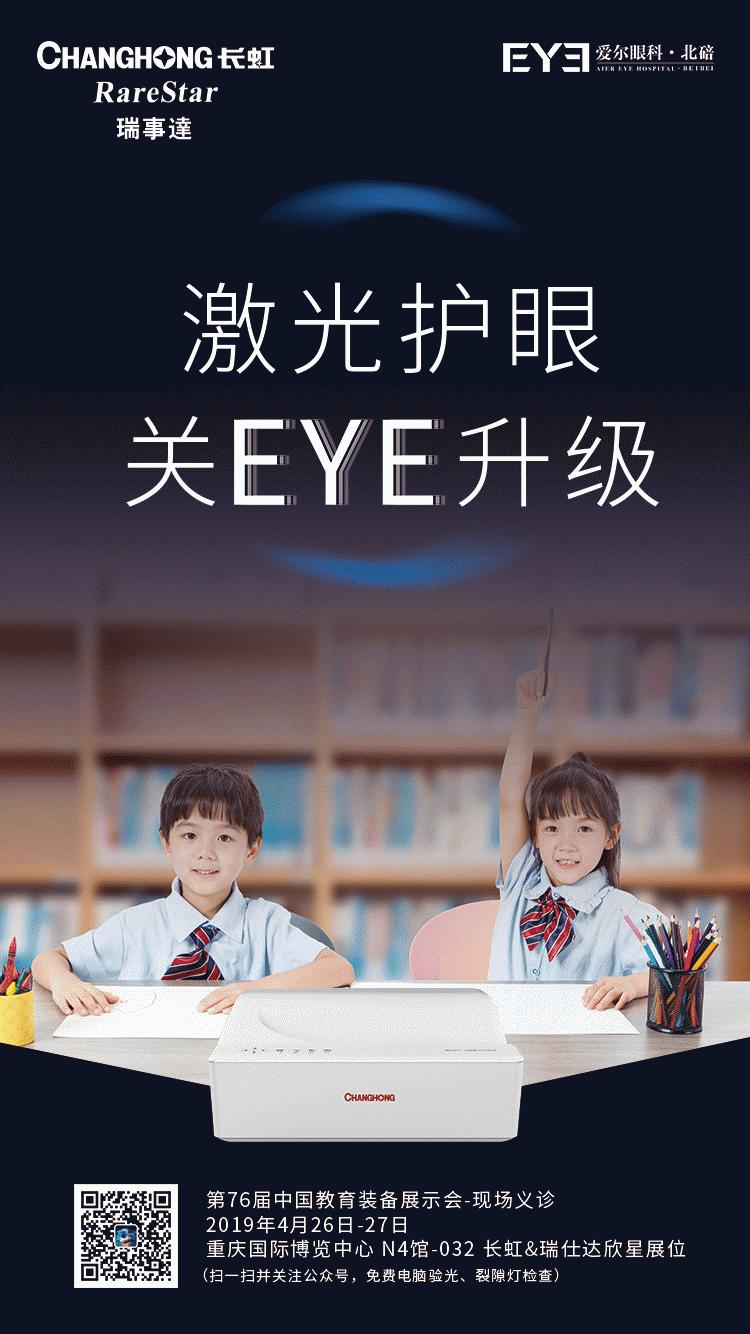 2019年4月26日-28日,长虹激光将携手北京瑞事达公司亮相第76届重庆中国教育装备展。对于国内最大的综合性教育展会,长虹激光诚意满满,不仅将在现场展示多种教育显示解决方案,助力国内教育设备发展,带来更科技的教学方式,更健康的学习环境。更将联合爱尔眼科共同开展以“激光护眼,关EYE升级”为主题的义诊活动,进一步提升教育行业对于青少年眼健康问题的重视。