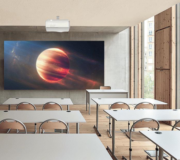 长虹智能激光投影机P5系列, 有着区别于普通投影机的超短焦技术,仅需48cm即可投射百寸大屏,让老师免受炫目的投影光线干扰。