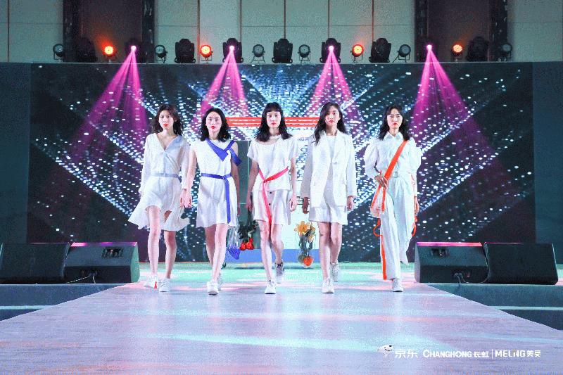 跨界秀场中,炫酷的灯光、美艳的的模特、新奇的时装与本次长虹·美菱中国区在京东全球首发的高端产品相得益彰;独特、灵动的新品发布方式,展现长虹·美菱对人性化居住体验的关怀与执着!新品发布完成后,姜悦音领衔设计师团队登上T台,讲述本次跨界时装秀的服装设计理念,并向长虹·美菱中国区、京东领导赠送装裱设计手稿。