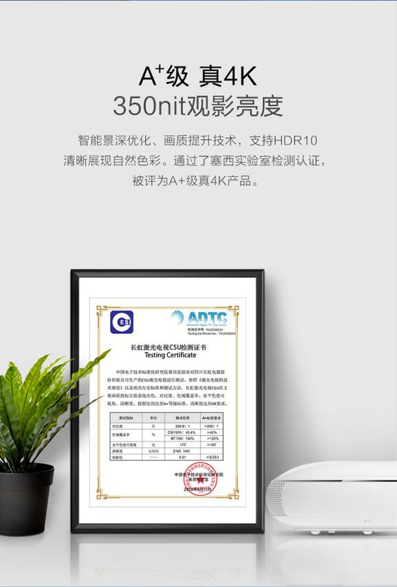 尽管LED占据市场高位多年,但激光显示技术的产业化已经是不可逆转的事实。C5U已获得了A+级真4K激光电视认证,达到了超高清的显示标准,并且超长使用寿命高达25000h保证消费者的经久耐用,购置一台长虹90 C5U回家,在未来的五年甚至十年内是不会过时的。