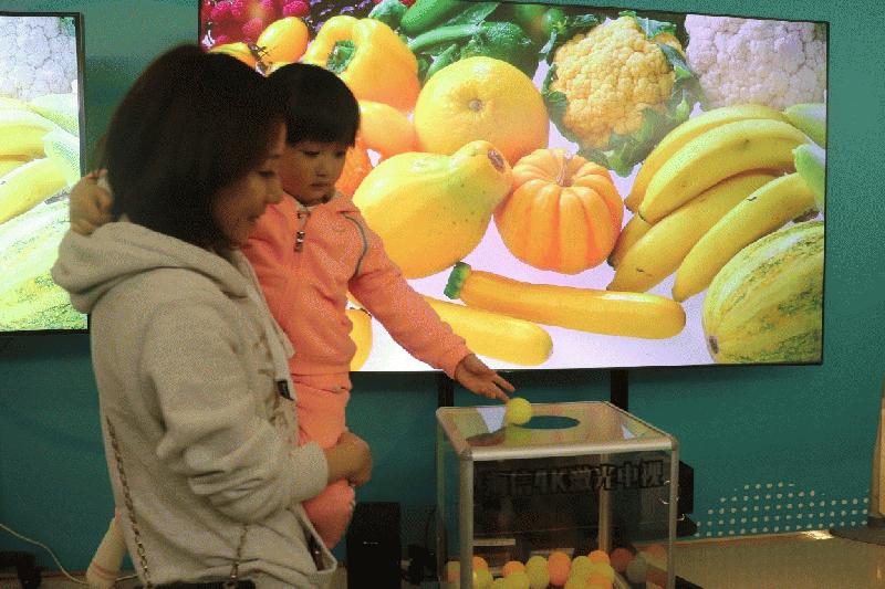 现场对比展示了海信100吋4K激光电视和80吋普通液晶电视。在四米视距范围内,用户可以欣赏100吋超大屏4K激光电视,但是无法长时间观看70吋以上的大屏液晶电视。究其原理,激光电视有着先天的技术优势。首先,海信激光电视融合了先进的电视画质技术和投影技术,采用激光反射式成像原理,光线更加柔和,可达4K超高清画质。其次,视觉舒适度与临场感有着密不可分的关系,海信激光电视提供的沉浸体验可以缓解视觉疲劳。更为重要的是,海信激光电视避开了显示产品中易造成视力损伤的440-450nm短波蓝光的伤害,波长更长,极大降低了对视力的影响。除此之外,海信激光电视配备智能光感功能,智能感知外界环境光的强度,AI调节当前环境下最合适的观看亮度,避免在黑暗环境中光线过强影响儿童视力。