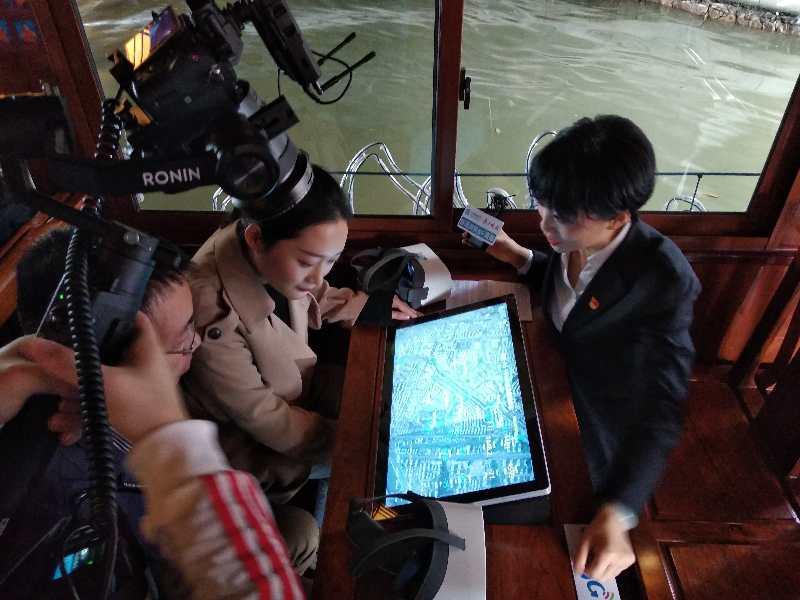据介绍,中国移动江苏公司已完成秦淮河西线和东线的5G网络覆盖,游客只需使用4G手机,就能通过船上安装的便携式网络热点(CPE),连接5G网络信号转化的高速WiFi,体验可达1Gbps的下载速率。借助安装在船顶的360°全景高清摄像头,坐在船舱内的游客戴上VR眼镜,就仿佛置身船顶浏览两岸风景。不久之后,游客还可以通过Cloud VR沉浸式体验秦淮美景的历史云烟和未来画卷。
