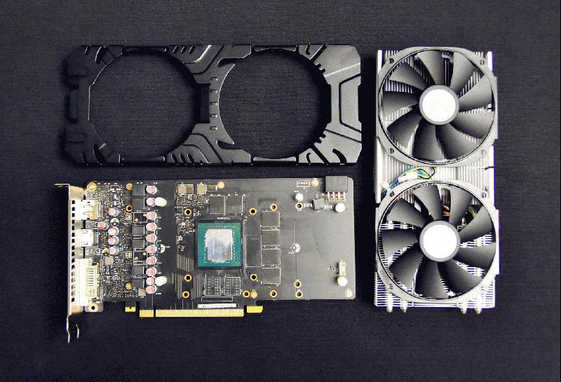 整卡功耗160W,单个8针辅助供电, 4热管铜底双风扇散热器,风扇的温度控制能力达到230W以上,所以可以将最大功耗160W的这款显卡温度控制得很好。提供加固铝制背板,可以让该卡在安装于立式机箱中更稳固。