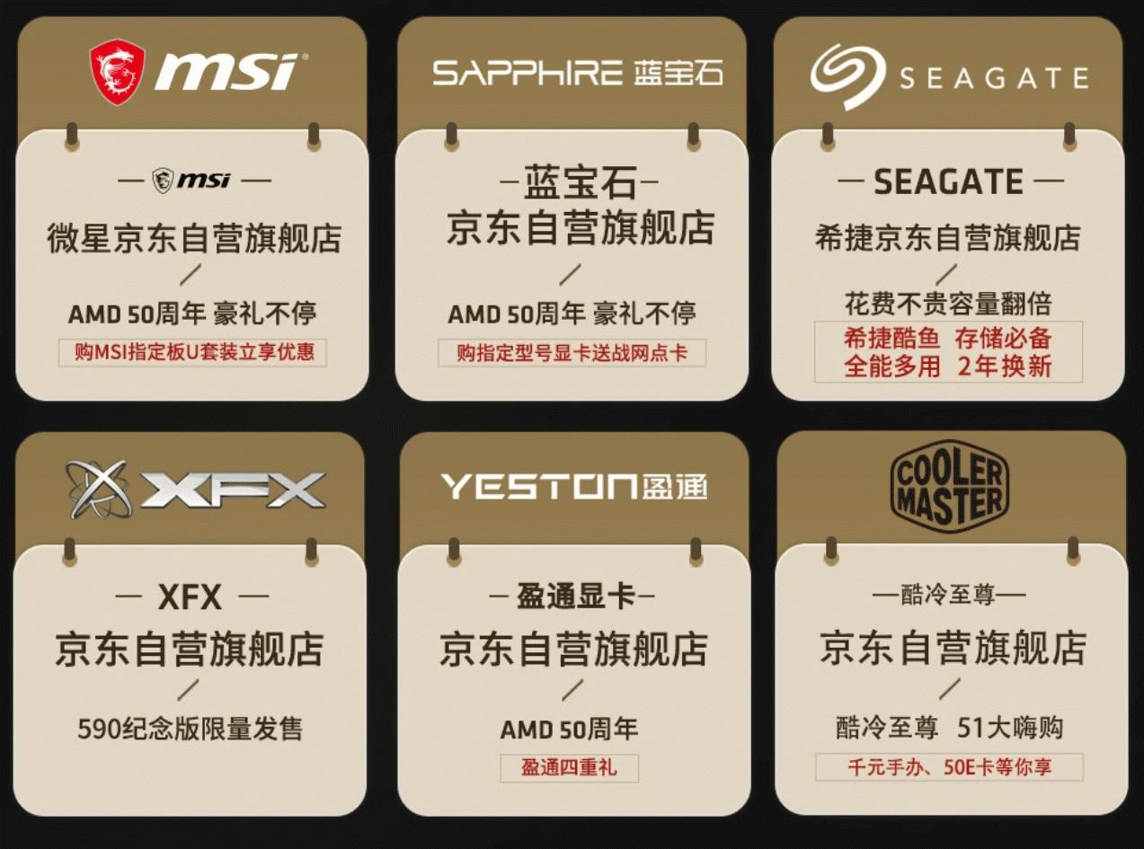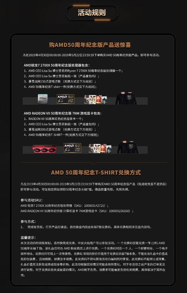 AMD 50周年纪念版专属奖品拿不停:活动期间内凡是抢购到50周年纪念版CPU及显卡的用户就有机会获得专属奖品,数量有限,先到先得。