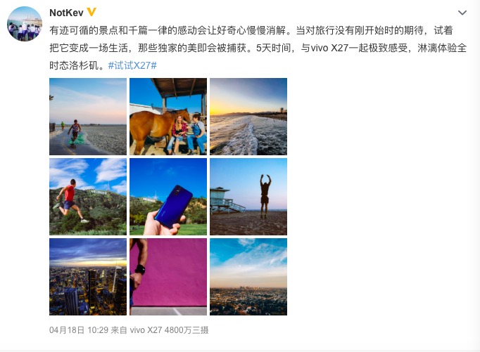 据悉,vivo发起的“试试X27”活动还在全球范围内引发共振反应,不少用户通过手中X27,定格洛杉矶、摩洛哥海外城市美景。不少体验者以及网友纷纷感叹“vivo X27真香。”