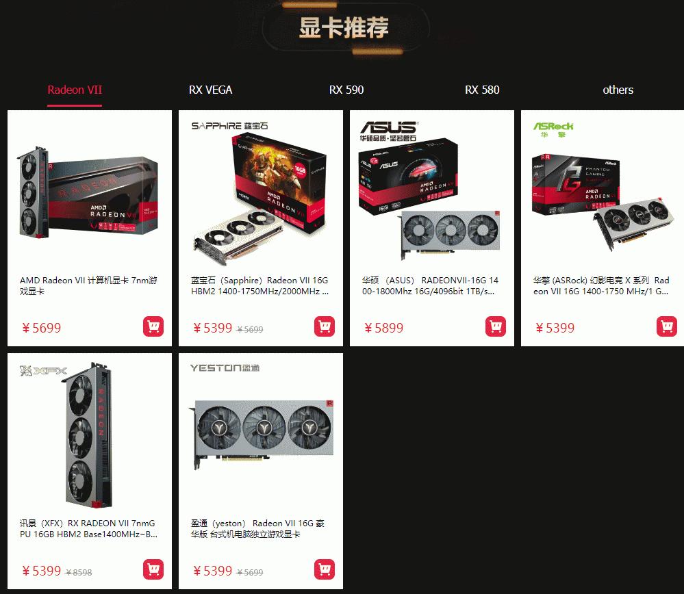 显卡方面,更有来自蓝宝石、迪兰、华硕、华擎、讯景、盈通等知名一线AMD显卡品牌厂商的多款市售热门Radeon系列显卡推荐,不同需求的玩家都可以找到自己需要的显卡产品。