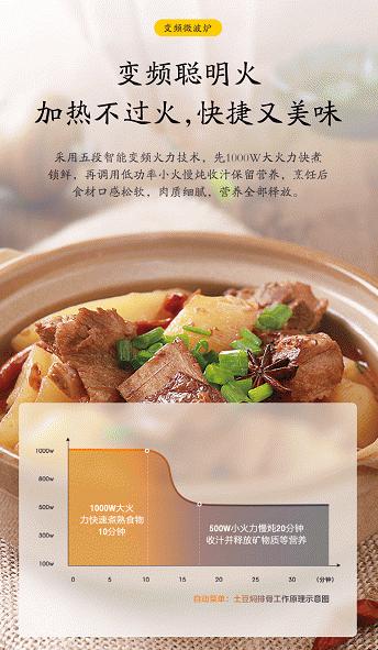随着生活节奏的加快,国民对健康饮食、高效便捷的追求愈加强烈,这也决定了厨电行业技术改革的方向。美的微蒸烤一体机(PG2310)深知用户痛点,突破传统恒温加热技术,在微波功能方面全新升级,创新使用五段智能变频火力技术。