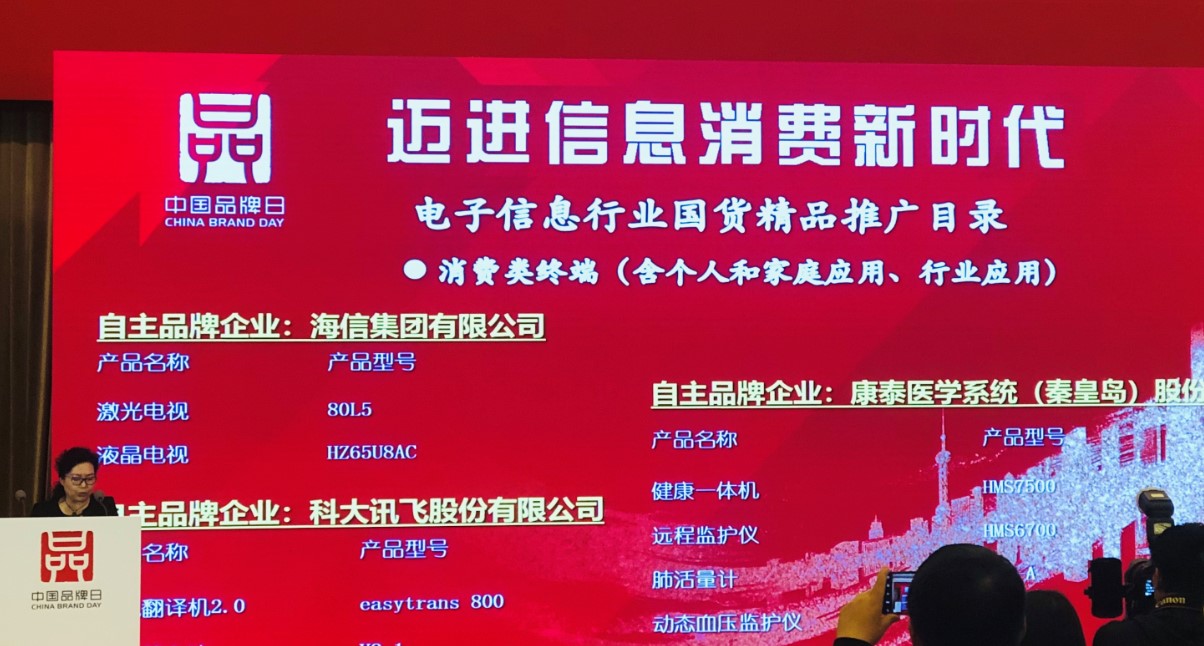 5月10日中国品牌日当天下午,中国电子信息行业联合会在上海发布了《2019年中国品牌日电子信息行业国货精品推广目录》,海信4K激光电视80L5、海信ULED超画质电视U8两款备受市场认可的产品双双入选。