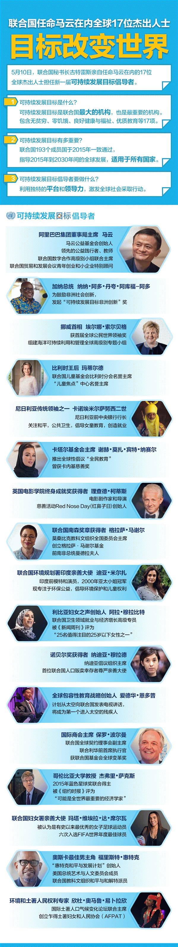 【小熊在线网 新闻报道】5月10日,联合国秘书长安东尼奥·古特雷斯亲自任命包括马云在内的17位全球杰出人士,交给他们一项改变世界的计划:可持续发展目标。
