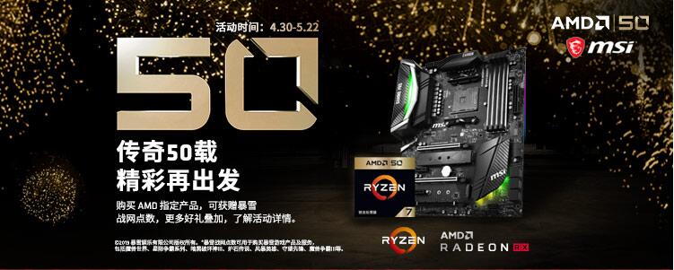 AMD 50周年活动对所有人来说是一次全新的突破,在这次的活动中AMD除了推出了AMD锐龙7 2700X 50周年纪念版处理器以外,还联合了众多的知名硬件厂商形成DIY产业联盟,为这次50周年活动增添更多的超值套包产品。其中就有DIY产业联盟中的全球知名板卡厂商微星科技为广大用户带来的50周年纪念版“板U套装”,为了让用户们有更多的抢购机会,微星推出了4款不同型号主板的板U套装供广大玩家们选择。