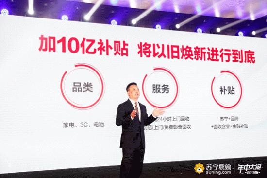 如今,在618年中大促节点,苏宁再次加推10亿补贴,并且将补贴重点由家电产品升级到了家电、手机、电脑等各个品类,甚至小到一节电池,都有专属的换新补贴。侯恩龙表示,“以旧换新上苏宁,已成为不少消费者的选择。这个618,我们将在品类、服务、补贴上三重升级,将以旧换新进行到底。”