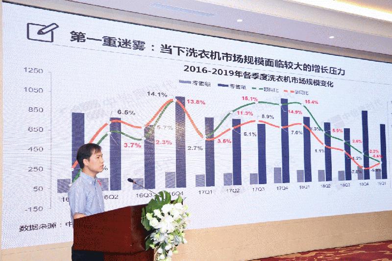 北京中怡康时代市场研究有限公司白电事业部副总经理王宏吉先生就2019洗衣机市场发展趋势进行了详细汇总报告:报告指出伴随着房地产下行、电商红利逐渐消失,当下的洗衣机市场处在规模承压、线上增长放缓、集中度提升的三重迷雾当中;而大容量产品、变频波轮产品市场、洗烘一体机市场、高端洗衣机市场、迷你洗衣机市场是产业的五大增长点。