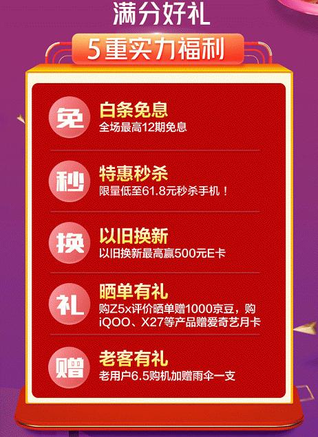 不仅如此,vivo还在京东平台推出满分好礼优惠,包括特惠秒杀、以旧换新、白条免息、晒单有礼、老客有礼等五重实力福利,带给用户无与伦比的购物体验。