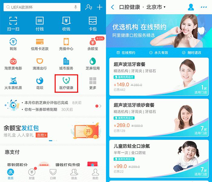 支付宝上线一键预约口腔诊所功能 20城先体验