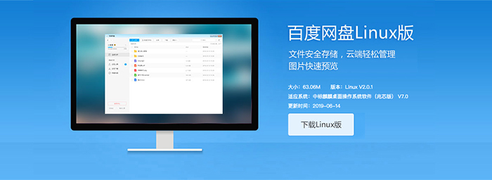 6月15日,百度网盘Linux版正式发布,版本号为Linux V2.0.1,安装包大小为63.08M,适应于中标麒麟桌面操作系统软件(兆芯版)V7.0。百度网盘是百度推出的一项云存储服务,目前已经覆盖Windows、Android、iPhone、iPad、Windows Phone、Mac、Linux等多个平台。用户将可以轻松将自己的文件上传到网盘上,并可跨终端随时随地查看和分享。目前已上线的产品包括网盘、个人主页、群组功能、通讯录、相册、人脸识别、文章、记事本、短信、手机找回等等。支持主流格式的视频在线播放,用户可根据自己的需求和网络情况选择“流畅”和“原画”两种模式。此外,百度网盘支持离线下载,目前已支持http/ftp/电驴协议/磁力链和BT种子离线下载。