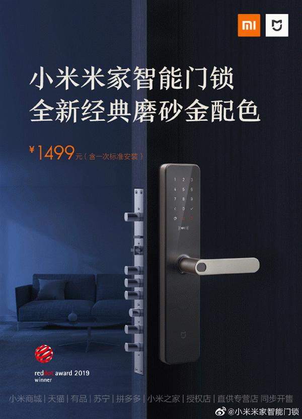 【小熊在线网 新闻报道】小米米家智能门锁官微宣布,小米米家智能门锁全新磨砂金配色今天开售,售价1499元,售价内含一次标准安装。