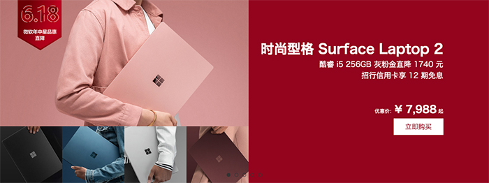 微软官方商城6月16日0点正式开启了年中促销计划。部分优惠如下:Surface部分,Surface Laptop 2 i5/8GB/256GB/灰粉金,7988元;Surface Laptop 2 i5/8GB/128GB/亮铂金,6988元;Surface Laptop 2 i7/8GB/256GB/全色系,9988元;Surface Pro 6 i5/8GB/256GB/亮铂金/典雅黑,7888元;Surface Pro 6 i7/8GB/256GB/亮铂金/典雅黑,9988元;Surface Book 2 13寸 i5/8GB/256GB/银色,9988元;Surface Go 4GB/64GB,2788元;Surface Go 8GB/128GB,3688元。Xbox部分,Xbox One X 1TB (冰雪白特别版)/消光黑,3399元;Xbox One X 1TB (渐变金特别版),3699元;Xbox无线控制器(大镖客),459元;Xbox无线控制器 黑色/冰雪白/湛蓝,339元;Xbox Elite(精英版)无线控制器,990元。配件部分,Surface Headphones无线降噪智能耳机,1999元;微软Sculpt人体工学鼠标,249元;微软Sculpt舒适滑控鼠标,159元;微软Sculpt无线便携鼠标,89元。