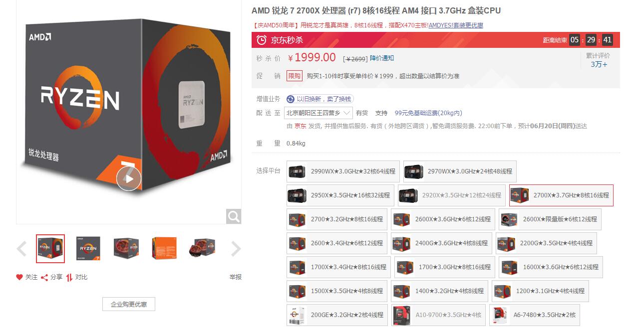 AMD京东618处理器综合NO.1 锐龙7 2700X