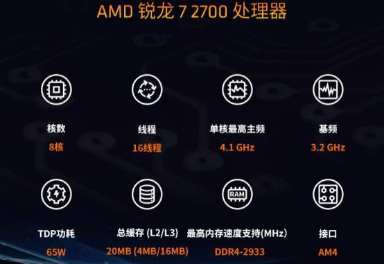 在性能参数方面锐龙72700处理器也是相当给力的,这款处理器为8核16线程设计,用户们在运行所需要的任何软件及游戏中都可以十分轻松且流畅。基础频率3.2GHz,单核最高频率4.1GHz,如此给力的频率用户在游戏过程中能保持稳定的帧数,并且用户们可随时超频,让性能更加出色。L3缓存16MB,而这款锐龙7 2700处理器的TDP只有65W,相信低功耗中也能让性能有更加给力的提升,这款锐龙7 2700还配备了散热效果堪称完美的幽灵Prism散热器,并且散热器自带LED RGB灯,对于DIY玩家和喜欢"光污染"的用户是一个不小的诱惑,可以说锐龙7 2700处理器值得用户们购买,喜欢的用户别磨蹭了,赶快把它带回家吧。