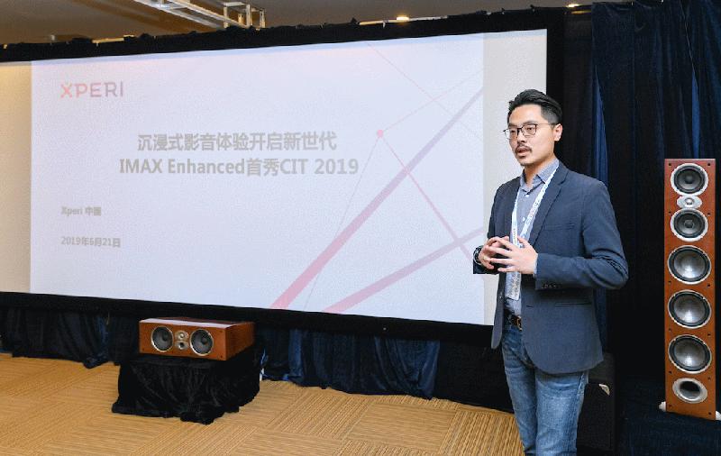到访的业内人士及参展观众共同观看了DTS带来的IMAX Enhanced全球首张官方超高清测试碟。Xperi (DTS母公司)大中华区高级授权总监郑毓琨出席了本次路演,并在今天的体验开始前为大家介绍了IMAX Enhanced的基本项目信息和体验亮点。