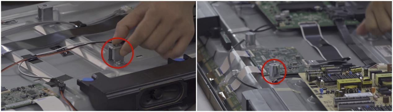 65吋电视由于自重不轻,挂墙的话对内部连接支架的承重要求很高,友商的承重接口只是一个折曲的铁片,而酷开电视C60则用了一个实心金属来固定,两者的差距不言而喻。