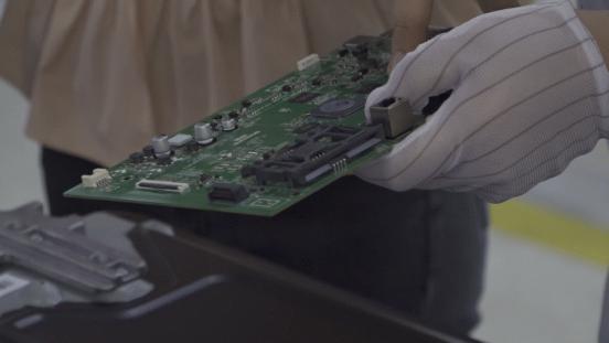 对于电视而言,机芯板和屏幕就像人的心脏和大脑一样重要,也是占电视成本最高的两个部分。在酷开机芯厂生产线,王萌为两位科技大咖介绍了机芯板的主要功能。当看到一条条自动化流水线和顶级制造设备后,科技小辛与Emma都表示颠覆了他们原本对电视生产的印象,科技感满满。酷开工程师现场介绍道,“机芯生产线的主力设备来自德国的西门子公司。它的速度能够达到每秒贴装15个零件,贴装精度满足在0.01毫米误差内。”这样高效率和精细化的操作才是提升性价比的关键,这是普通代工厂不可能做到的。