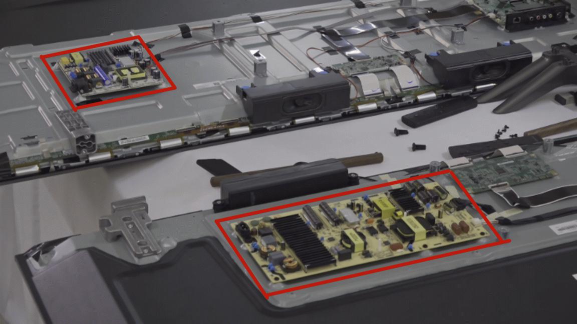 电源板明显的尺寸差异一来是成本的差异,二也是一个企业对于安全层面完全不同的追求,我们可以看到酷开电视C60是把产品安全放在第一位而不是仅仅满足国家生产标准的。