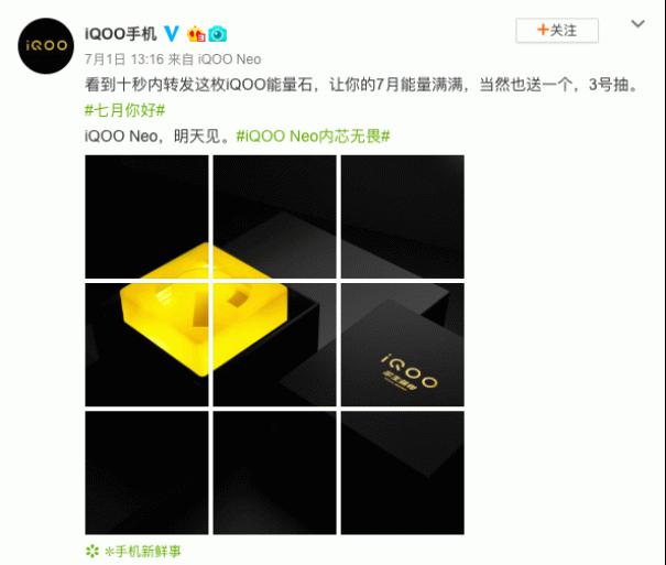 经过十几天的预热,iQOO家族最新成员iQOO Neo手机即将于今晚与广大用户见面。而网络上关于iQOO Neo的讨论也随之达到了高潮。昨天,iQOO品牌副总裁冯宇飞微博发布品牌故事:“因为有你,所以iQOO。感谢每一个支持iQOO的朋友。内芯无畏生而强悍的iQOO Neo将于明天发布,我们一起期待”!再次强调iQOO Neo手机的发布时间,由此可见内部对于这款产品的重视程度。