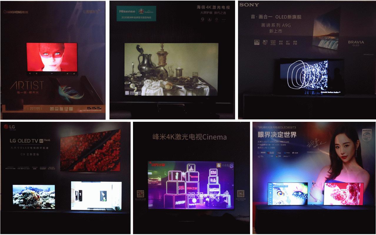 行业大会现场激光电视、量子点电视、OLED电视争相斗艳:海信双色4K激光电视100 L7、长虹CHiQ电视ARTRIST Max、Sony画谛系列KD-77A9G、创维超轻薄电视55Q40、LG OLED电视65C9、卡萨帝电视K65M300、飞利浦OLED电视804/T3,这些产品集齐大屏震撼的视觉体验和4K/8K超高清的精细演绎,同时被赋予人工智能的便捷,代表了目前中国市场彩电产品的高端、品质体现。