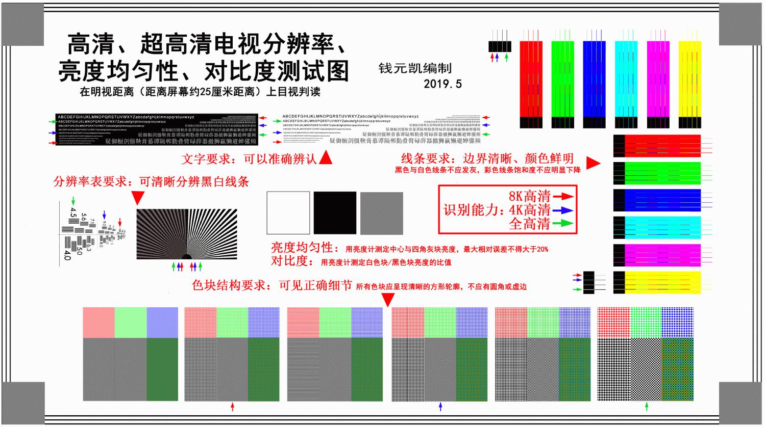 值得关注的是,8K电视仍处于市场成长初期,整体市场份额较小,《2019年1-6月中国彩电消费及下半年趋势预测报告》数据显示,2019年国内8K彩电消费预计6万台。但个别品牌借由8K推广势头蹭热度、造声量,用“支持8K解码的4K电视”来模糊消费者视听,实际显示效果与“真8K”大相径庭。为了让消费者能够直观、简便的识别8K电视,辨别8K画质,本次大会邀请国内著名的数码影像专家钱元凯教授带来行业首套8K电视测试图,开放给公众免费使用,相关文件可在中国电子商会和中国电子技术标准化研究院官网自行下载,并在8K电视上进行测试。