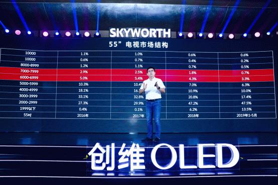 在创维RGB董事长王志国现场演讲的数据中可以看到,从2016年开始6000-7999价格段的电视销量逐年递减,高端市场的下沉情况不容乐观,长此以往,可能步入消亡,而消费者也将错过OLED的创新技术红利。如何用全新技术撬动LCD冗余发展之下的下沉市场,挽救行业于危亡,创维的OLED普及切入点瞄准了7999价格档位,以此为出发点接手行业高端市场,以期带动行业良性循环。