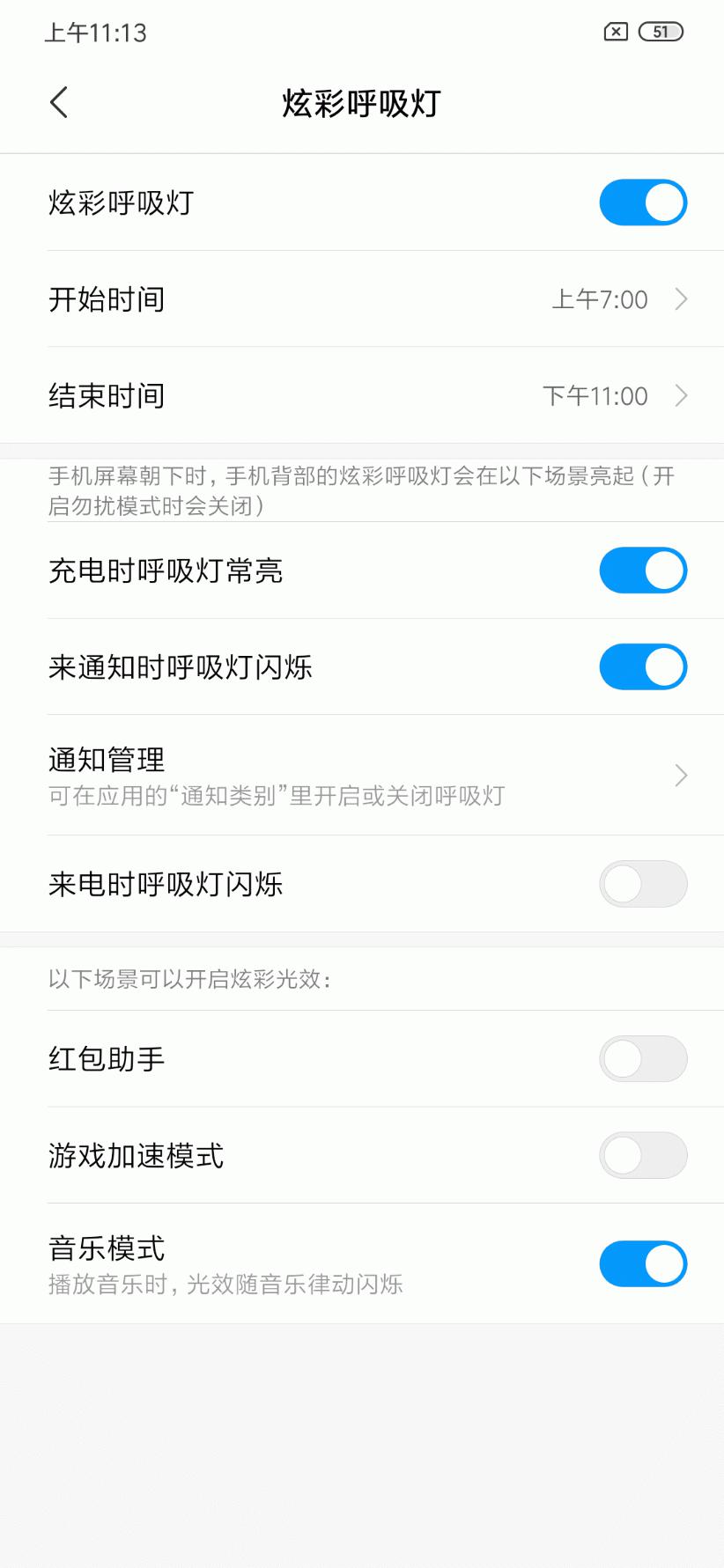 小米CC9保留了3.5mm耳机插孔和红外遥控发射孔,背部Logo小米CC9使用 “xiaomi”字样,位于摄像头模组一侧,这一logo还可当作呼吸灯使用,除了充电、通知等场景外,在抢红包、游戏、音乐等场景下也提供了不同的灯效,更显青春时尚。
